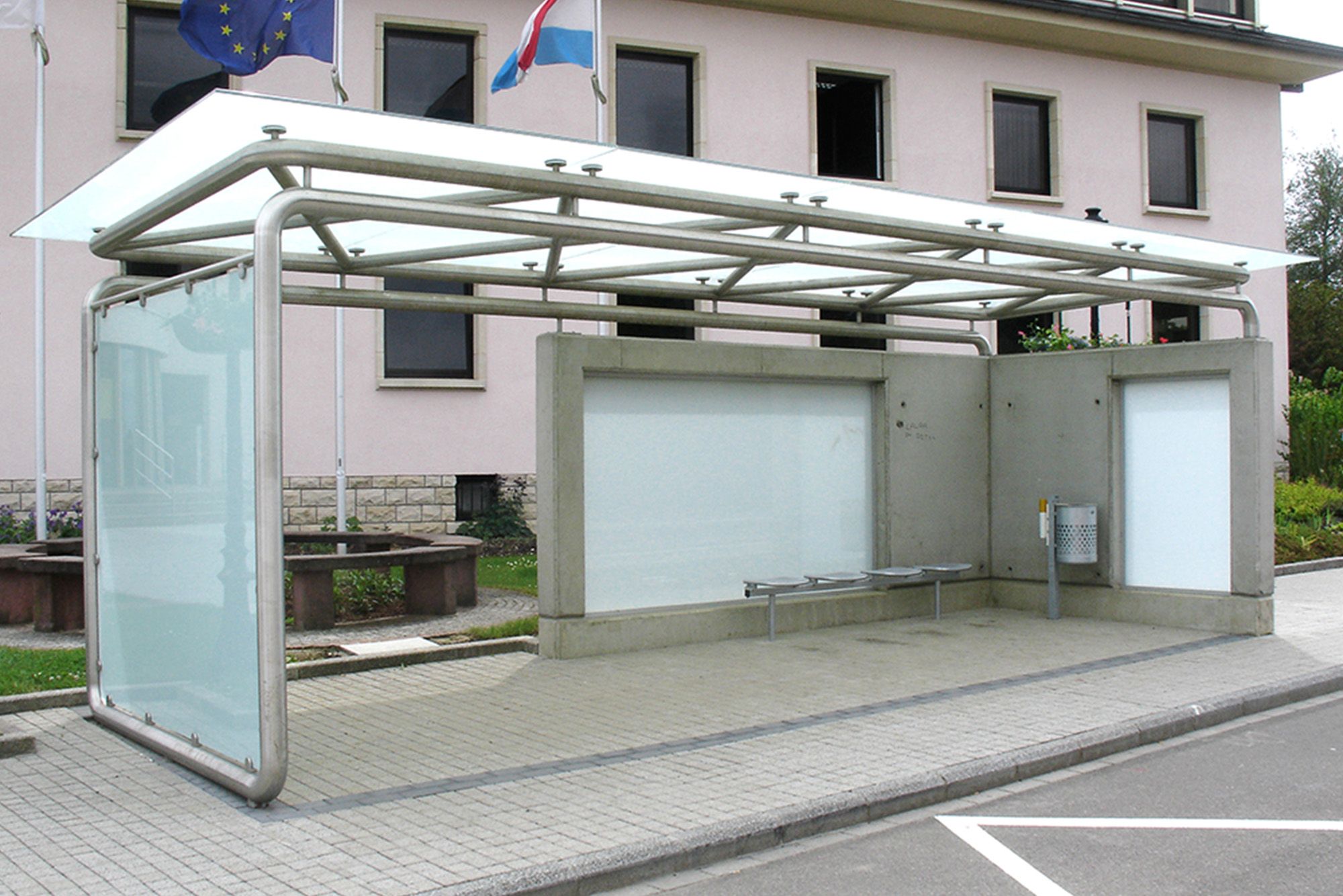 Abribus avec structure en acier inoxydable