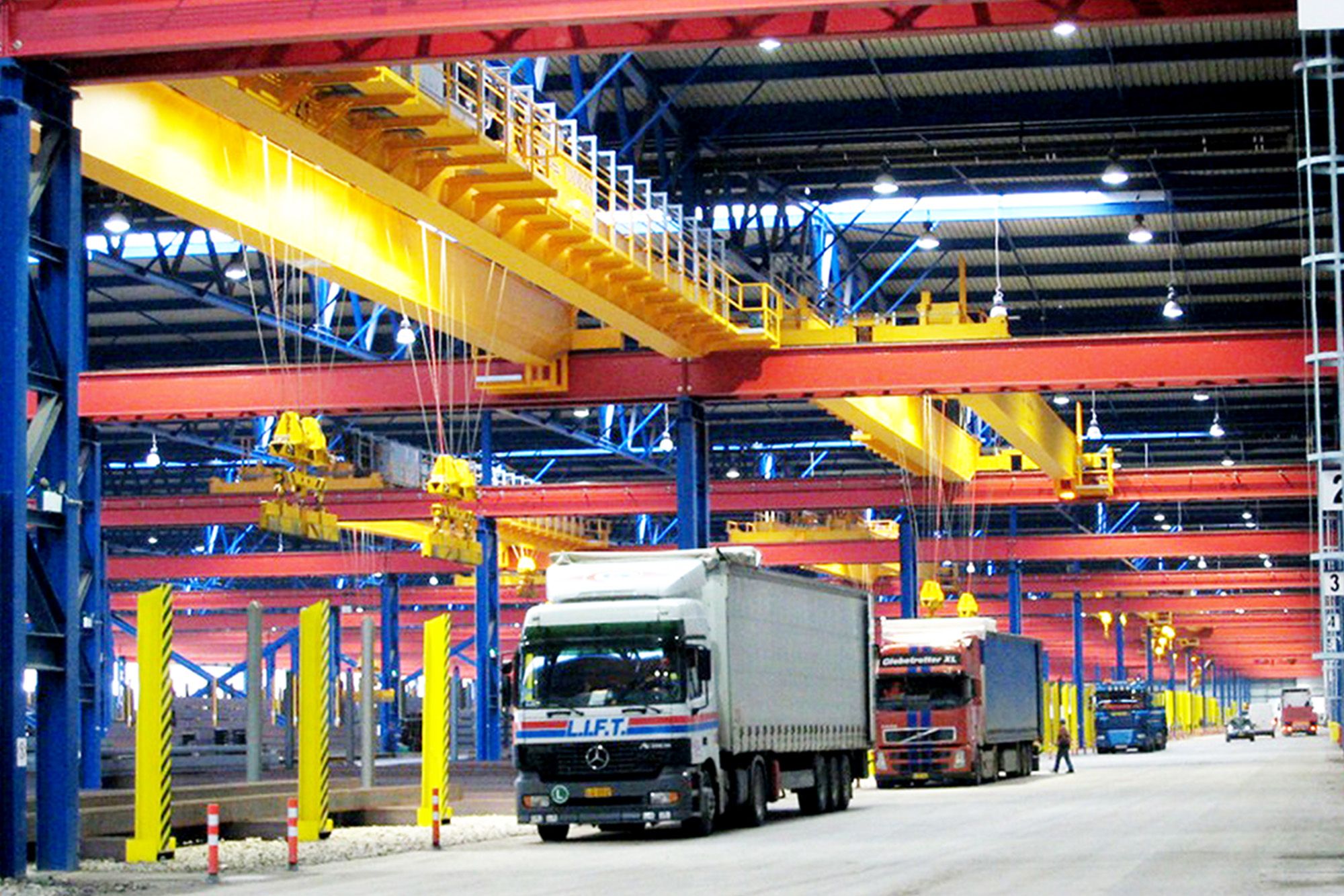 L’ensemble se compose de 17 travées contiguës dont 11, larges de 35,4 m, sont équipées de nouveaux ponts roulants 2 x 8 tonnes - 34 m à levage magnétique.